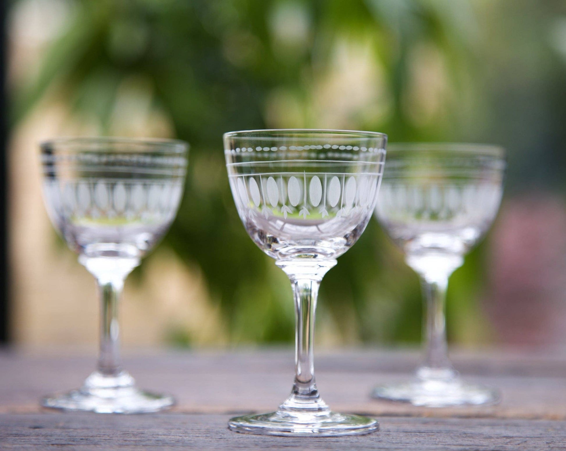 A Set Of Six Crystal Liqueur Glasses with Ovals Design