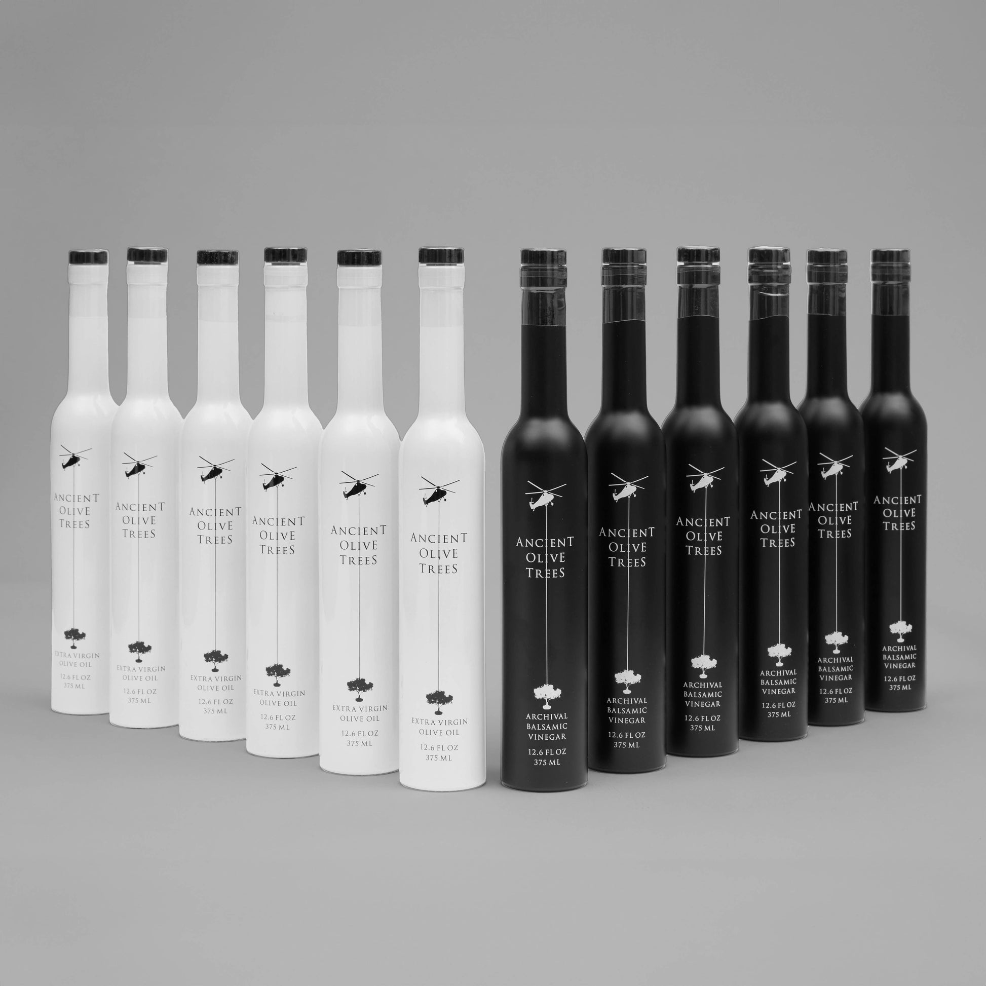 This olive oil gift set includes 6 bottles of our California-made olive oil + 6 bottles of our archival balsamic vinegar = 1 case of 12 bottles total.