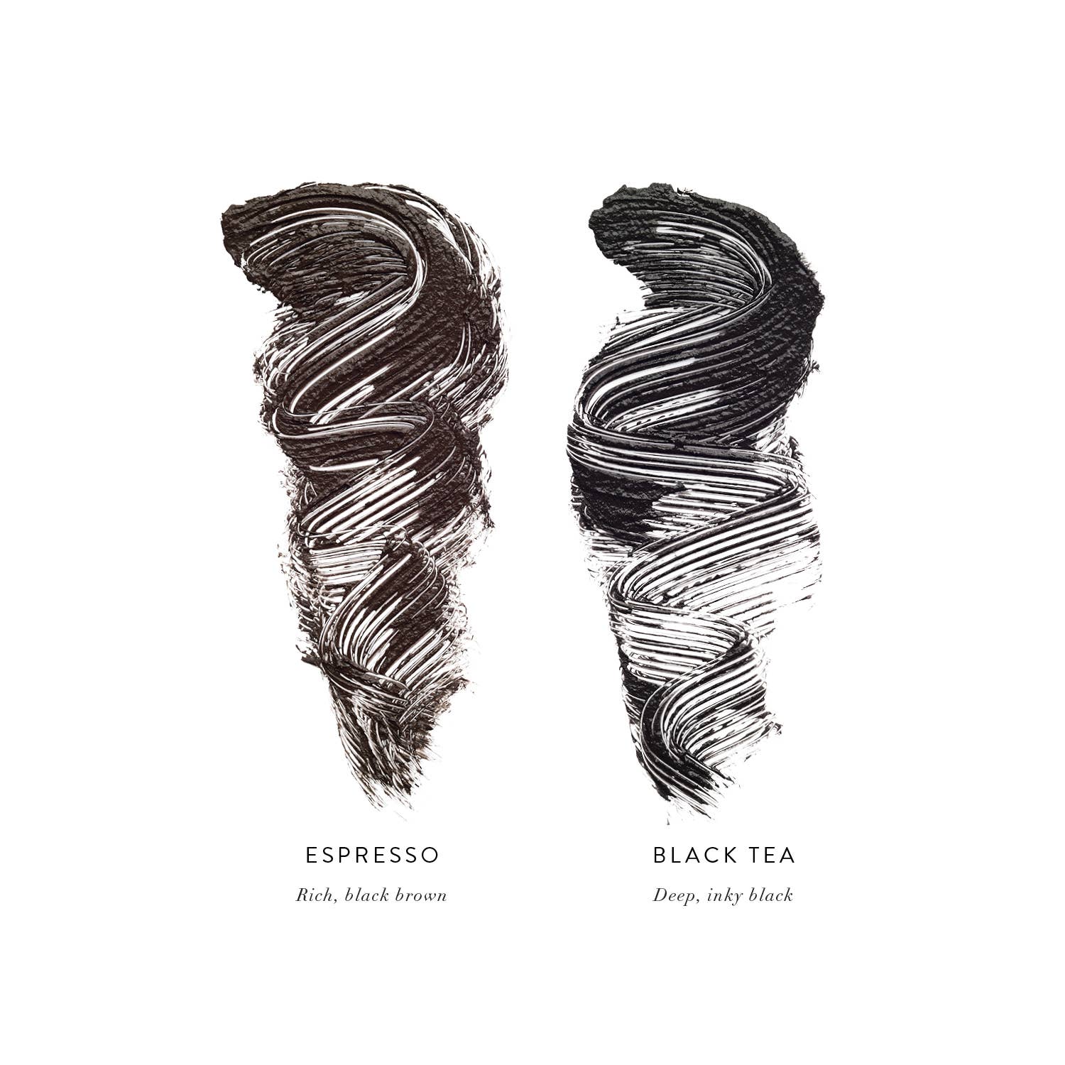 Two delicious shades: inky Black Tea + rich brown black Espresso.