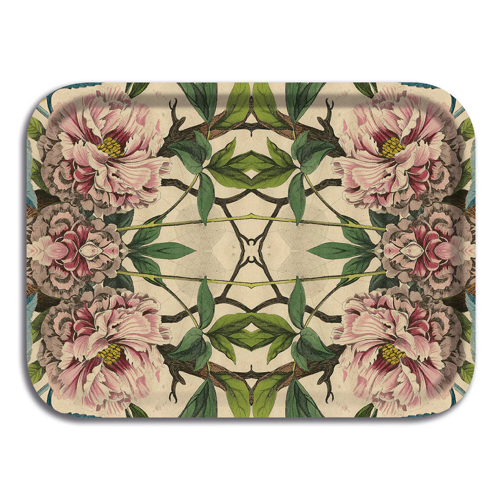 This inspired scene perfectly captures the exquisite beauty of the Peony Rose. A brilliant blend of pink, green and blue floral kaleidoscope elements, this vintage-inspired tray brings an element of contemporary cool to your home. Crafted in Sweden with sustainable birch wood, these trays offer a unique display of art while functioning as a place to hold your trinkets or to serve drinks and treats on. As a bonus, you can hang these up as an art piece with plate hangers. Designed for those that enjoy the wonder of garden flowers and contemporary design, with an edgy floral twist.