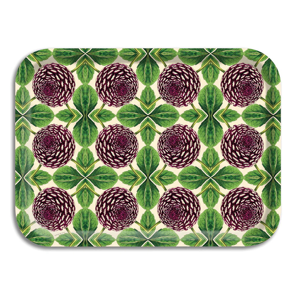 Purple dahlias offer a spectacular texture and colour contrast against the crisp green structural foliage. Perfectly blended, bountiful blooms and lush leaves make this vintage-inspired, floral kaleidoscope design one of our best sellers. Designed for those that enjoy the wonder of garden flowers and contemporary design, with an edgy floral twist.